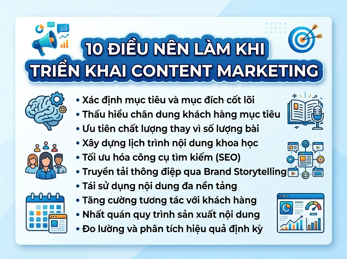 Để gặt hái thành công, việc hiểu người kinh doanh nhỏ có nên làm content marketing không thôi là chưa đủ, bạn cần một lộ trình thực thi bài bản. Dưới đây là 10 bí kíp giúp các chủ shop nhỏ tối ưu hóa nguồn lực.