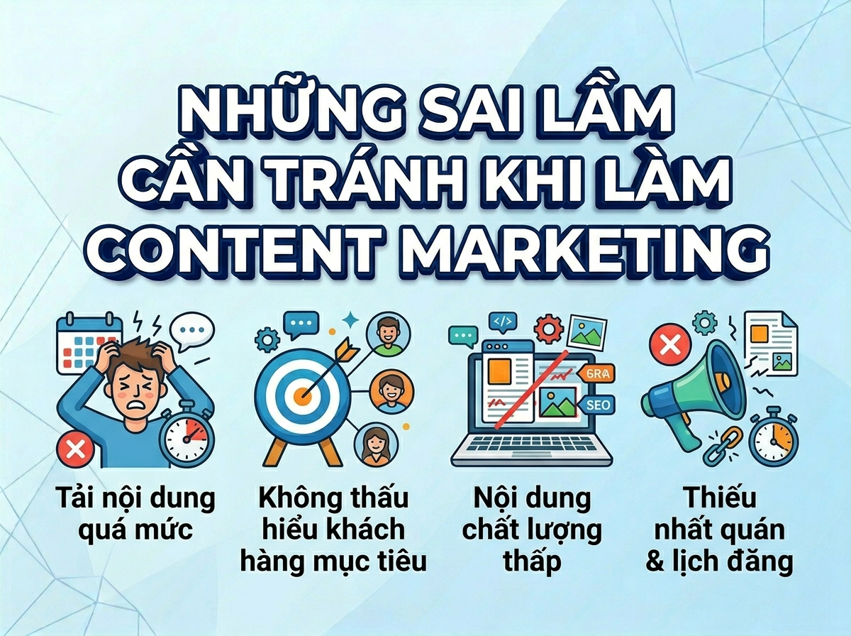 Hiểu rõ từng bước trong quy trình làm content marketing nhưng thực hiện sao cho đúng lại là thử thách lớn. Nhiều chủ shop đã phải bỏ cuộc sớm do vướng vào những sai lầm kinh điển dưới đây.